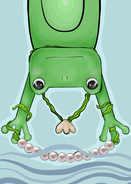Могут ли лягушки жить в море? Этот народец подводных глубин всю свою жизнь посвящает важной работе — добыче жемчуга — и служению королеве и королю. И так день за днем тихо течет жизнь лягушачьего народа.