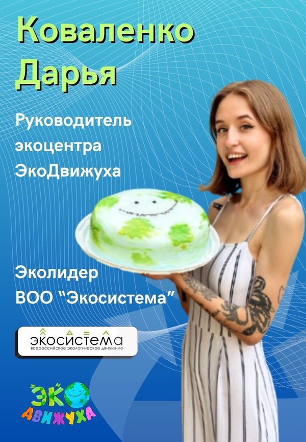 Краткое описание Вашей деятельности: Руководитель экоцентра «ЭкоДвижуха» и топ 20 лидеров экологического движения «Экосистема».