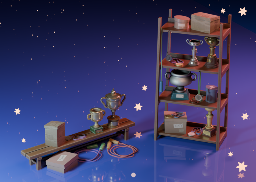 В школе, где обучаются девочки, есть большая кладовка с множеством разных предметов: спортивных атрибутов, старых наград, костюмов и коробок с безделушками.