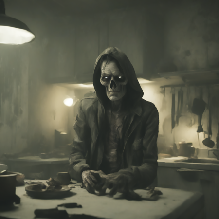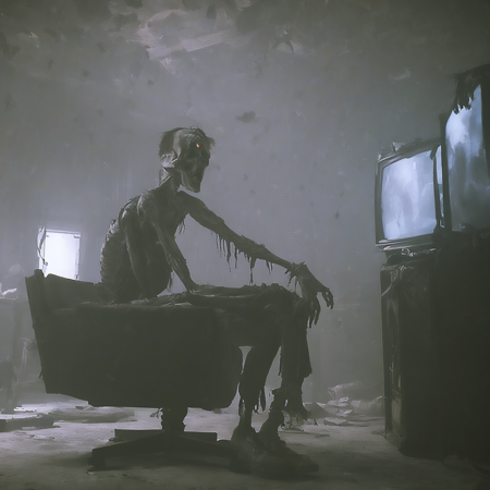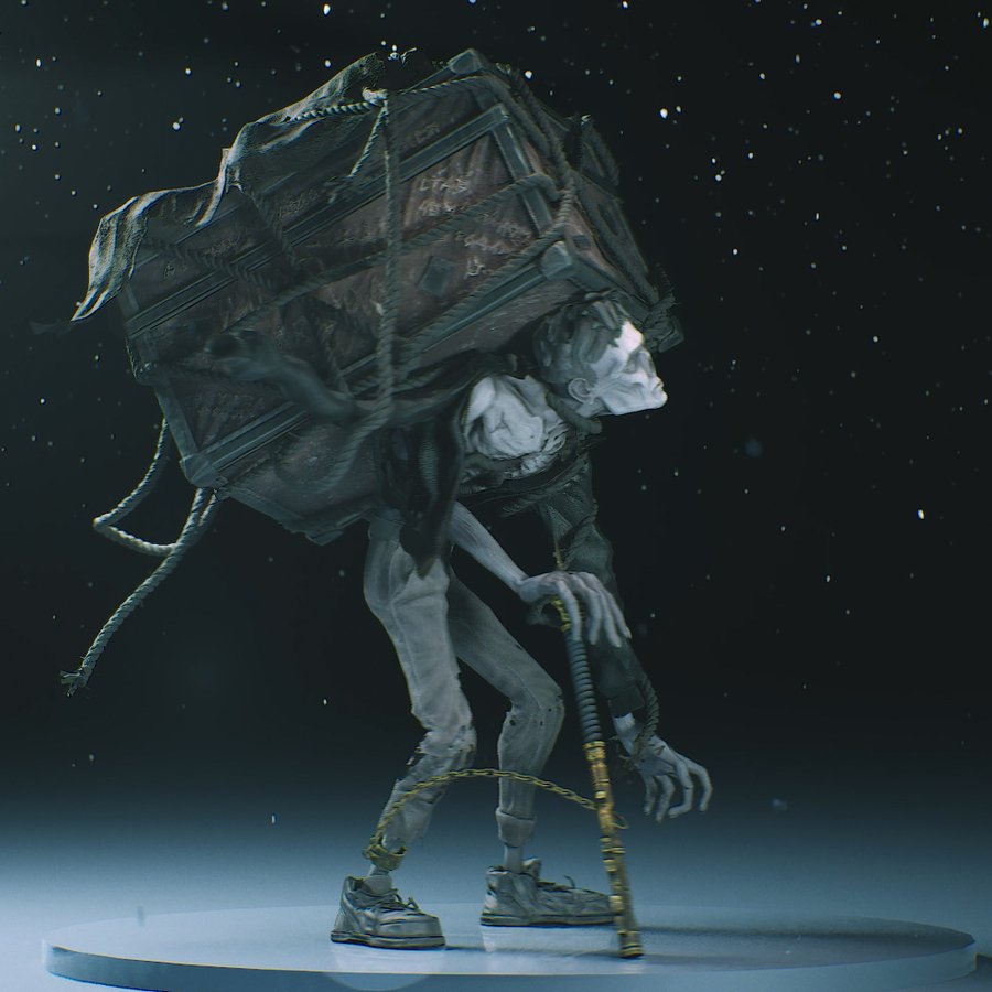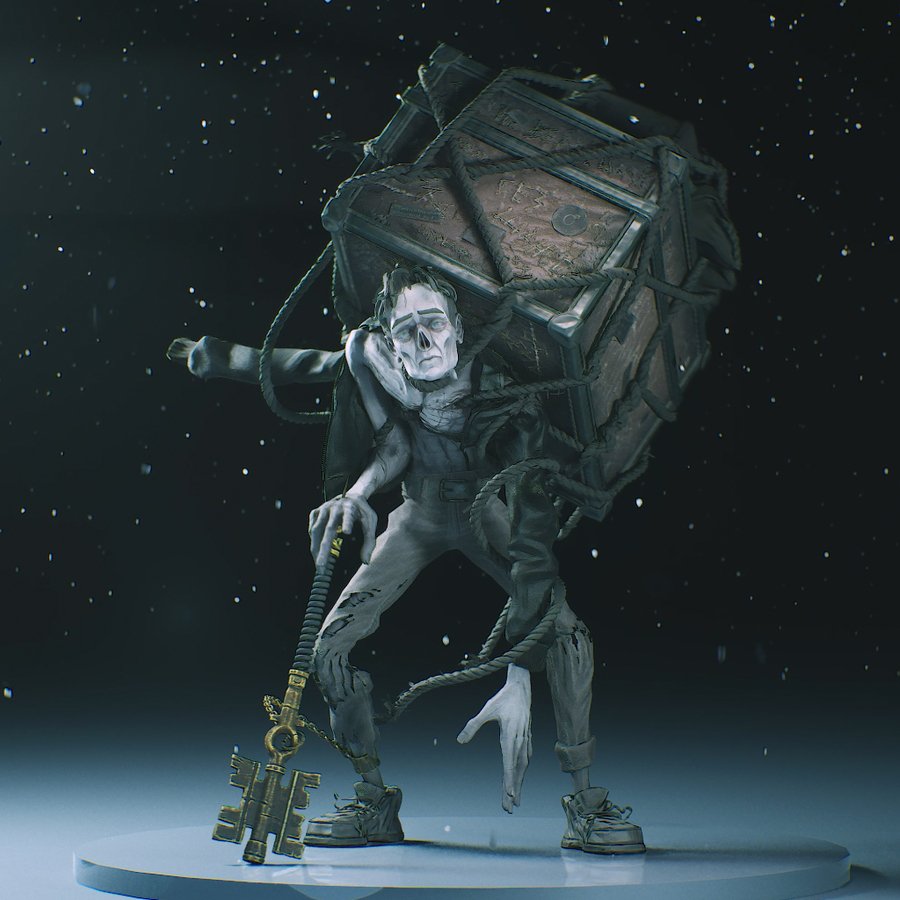 Задачей проекта стояло до-обучение нейросети Stable Diffusion под создание работ на основе моего персонажа «Мертвец Сундука»