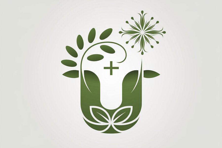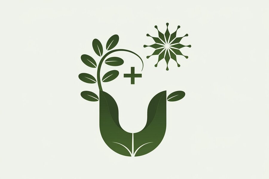 /imagine prompt: «A minimalistic green logo combining the shape of the letter „U“ and a floral pattern. At the bottom of the logo there is a stylized letter „U“ above it there is necessarily a + sign of the same width, a stem grows out of the + sign, gracefully bending. The stem is decorated with oval leaves and ends with a radial graphic flower in the shape of a star with long petals. The design is simple, concise and elegant, evoking thoughts of growth, sustainability and nature. For contrast, the background is made in white.»