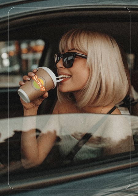 /imagine prompt: «Coffee delivery logo on with the name „Quince 17“ and the slogan „A few minutes from your coffee“. Main colors: orange-yellow, light greenish-blue, Crayola orange, Crayola olive green»