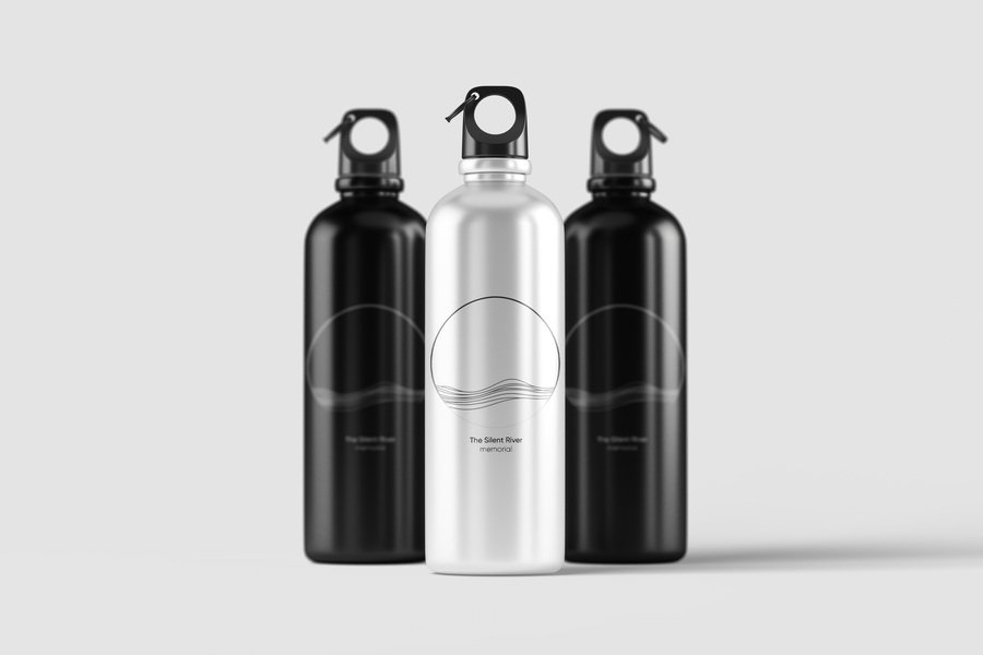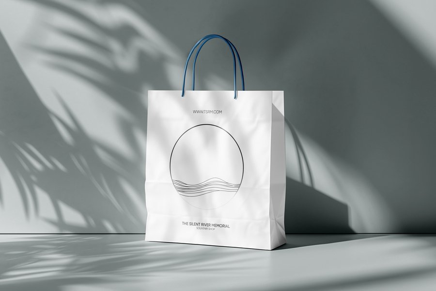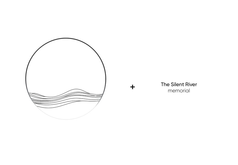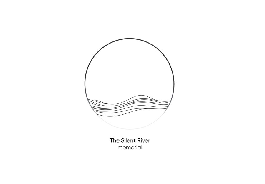 промт midjourney: make a minimalistic low detailed circle logo for The Silent River Memorial MOLOGA public memorial place, presence of the name is mandatory, minimalistic font, white background