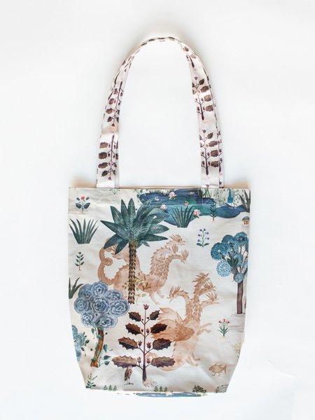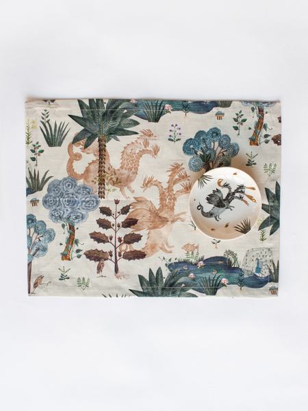 «Задача была создать принт с символом года. Я решила отойти от традиционных китайских образов и обратилась к русским сказкам. Здесь я нашла нашего знакомого Змея-Горыныча. Немного пофантазировав, я сделала из него стильного персонажи, поместила в средневековый лес и добавила ему забористых друзей»