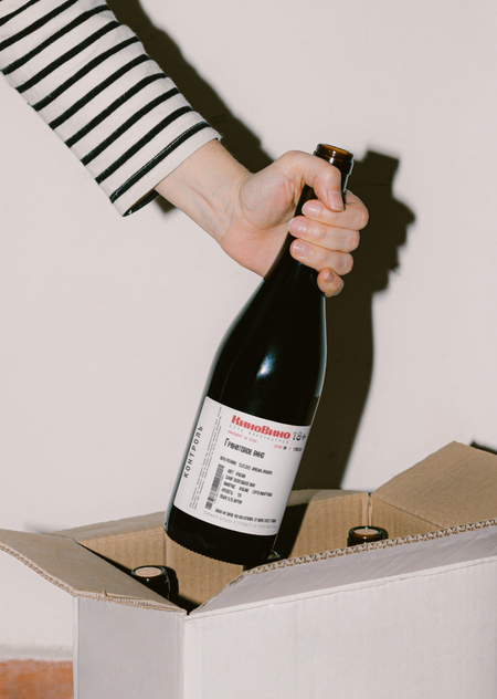 Одним из заданий в модуле учебы на профиле арт-дирекшна было создании упаковки для бутылок вина «КиноВино», сочетающей сущности этих довольно разных вещей. При создании этикетки я вдохновилась дизайном билетов в российских кинотеатрах. Из этого родилась небольшая айдентика, которую я разместила на мокапах и предложила для публикации в worldbranddesignsociety.