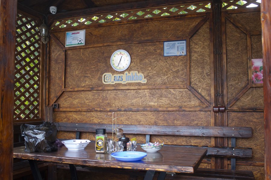 По дороге в Ботлих обязательной остановкой почти всех водителей становится заправка около села Нижнее Инхо. При заправке автомобиля можно бесплатно выпить чаю и отдохнуть. Это стихийное место отдыха было создано по инициативе Магомедали Муртазалиева, который изображен на фото с беседкой. Изначально вместо беседки стоял небольшой стол. Благодаря заинтересованности не только владельца заправки, но и путников, место для отдыха обрело новую форму.