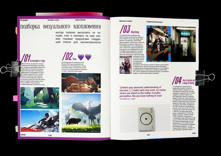 журнал состоит из 4 разделов: /01 свежие сплетни — последние новости в дизайне, дайджест курсов, тренды