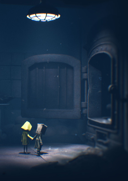 На изображении мы видим Моно, мальчика с бумажным пакетом на голове, и Шестую, которая ещё не нашла свой узнаваемый жёлтый дождевик. Мальчик протягивает девочке руку, предлагая помощь, отчасти выполняя тем самым гендерную роль мужчины-защитника. Тем не менее поведение детей можно объяснить и тем, что в опасной ситуации, где они не в выигрышном положении из-за своего небольшого размера, им выгоднее объединиться.