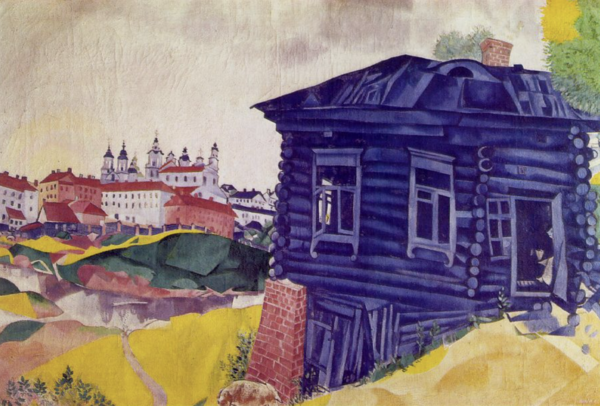 Родной город в работах Марка Шагала: «Над Витебском», 1914 // «Синий дом», 1917