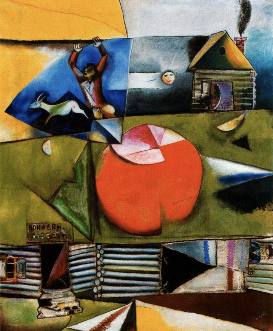 Марк Шагал, «Русская деревня под луной», 1911 г. // «Дождь», 1911 г. // «Натюрморт», 1912 г.