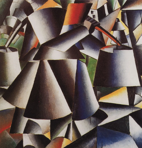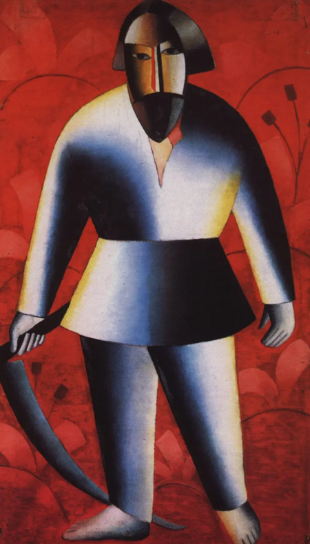 Казимир Малевич, «Жнец на красном фоне» // «Крестьянки с вёдрами», 1913 г.