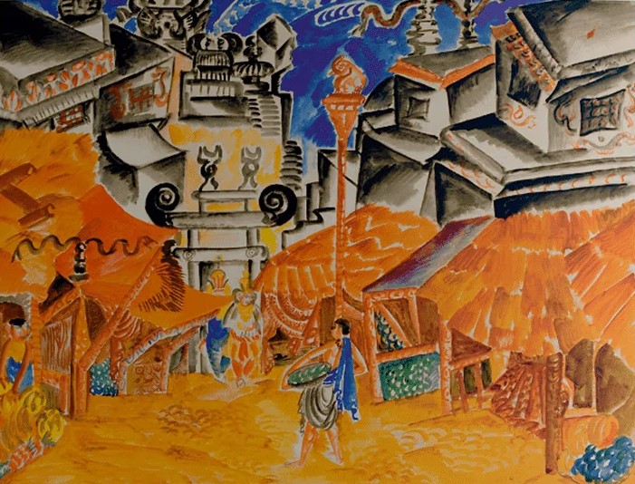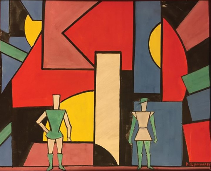 Вера Ермолаева, Эскизы декораций к опере А. Кручёных и М. Матюшина «Победа над солнцем» и пьесе К. Ляндау «Как огородник двух министров обманул и на царевне женился», 1918–1920 гг.