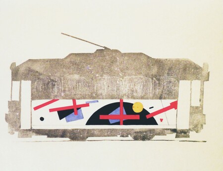 Нина Коган, Эскиз супрематической росписи трамвая, 1920 г. // Николай Суетин, Дизайн железнодорожного вагона, 1920 г.