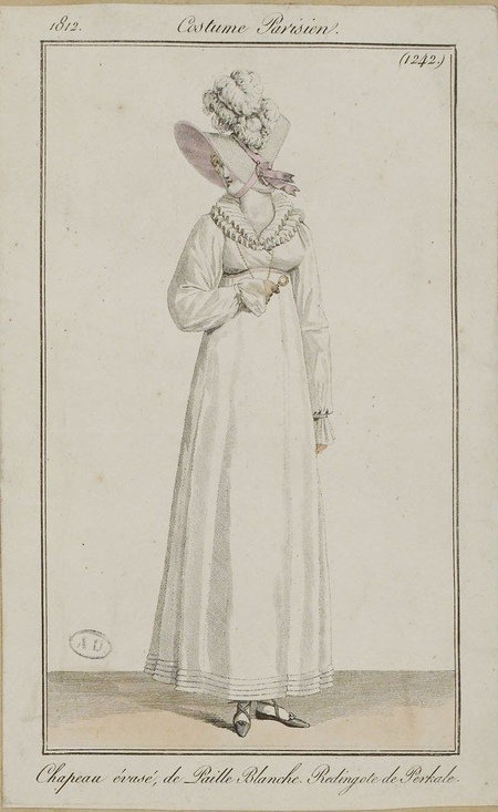 В начале XIX века мода приобретает намного боле простые силуэты, приближенные к античному образу одежды. Появившийся во Франции стиль ампир освобождает женщин от жёсткой каркасной структуры костюмы. Корсет, даже если и использовался, был мягким. Прототипом такого платья прямого кроя с высокой талией становятся белые рубашки из муслины, которые завозились во Францию с Ближнего Востока еще с XVII века.