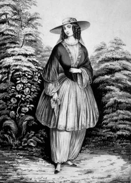 В XIX веке появляются первые крупные попытки женщин бороться за свои права быть равными с мужчинами в правах. Некоторые из них начали носить брюки, а первые женские брюки создает Амелия Блумер — активистка движения за избирательные права женщин . Такие брюки были больше похожи на шаровары, а сам костюм состоял из платья-туники с корсажем, широкой юбки и шаровар. Вполне ожидаемо, что на тот момент общество такой новаторский подход восприняло скорее отрицательно. Такие шаровары-блумерсы женщины массово стали носить лишь в конце XIX века во время велопрогулок.