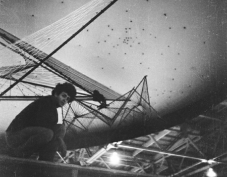 Франциско Инфанте на монтаже объекта «Звук и цвет» на международной выставке «Химия-70» | 1970 | эскиз к международной выставке «Стройматериалы-71» | 1971