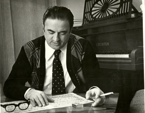 В первую очередь в записи. В начале, в его раннем детстве, это были записи на рентгеновских пленках. Затем появились пластинки. Начинал он в джазе, слушая голос Америки, который в Баку пробивался. Я это знаю по рассказам его и его друзей, которых я еще застала в живых. Я помню пленочный магнитофон, кассеты. Вначале это были бобины, потом это были маленькие аудиокассеты. Он слушал бесконечно. Переслушивал много раз. У него был идеальный слух, и он мог прослушав несколько раз, расписать на весь ансамбль, не подходя к инструменту. Поэтому он вслушивался в каждую партию, для него слышание музыки было равнозначно читке партитуры. Кстати не мог водить машину, когда звучит музыка, так как для него это работа слушания. Это его главное вдохновение. Естественно, он часто гастролировал, и буквально с консерваторских времен, уже с 1959 года, он в течение двух лет гастролировал по Союзу в составе Жака Дуваляна. Естественно, перезнакомился со многими людьми и переслушивал огромное количество джазовой музыки, джазовой, эстрадной и всякой фольклорной. Это тоже было для него большим вдохновением, импульсом для создания чего-то нового.