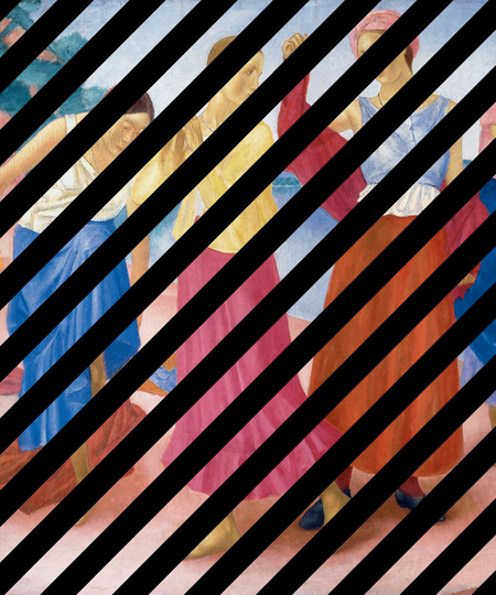 Рабочий Петроград. Холст, масло. 1937. Фрагмент (слева) Девушки на берегу Волги. Холст, масло. 1915