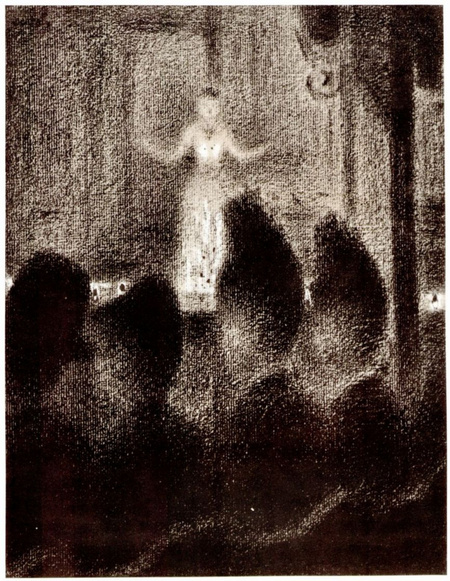 Картины Жоржа Сёры выделяются на фоне других изображений театральной жизни своей точностью и особой методичностью исполнения. Используя технику пуантилизма, Сёра создаёт образы, где каждая точка картины тщательно продумана, что придаёт композициям необычную световую структуру.