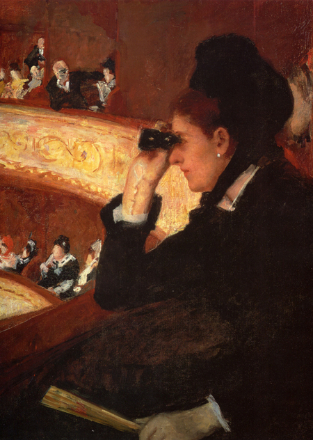 Одним из ключевых мотивов театральной тематики в живописи импрессионистов и их последователей стало изображение зрителя. Художников интересовало не только само сценическое действие, но и то, как публика становится частью театрального спектакля — зрелищем для другого взгляда. Женщины в ложах, сидящие в зрительном зале или наблюдающие из-за оперного бинокля, становились важными визуальными персонажами: они и смотрят, и находятся под взглядом — публики, художника, друг друга.