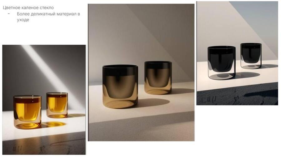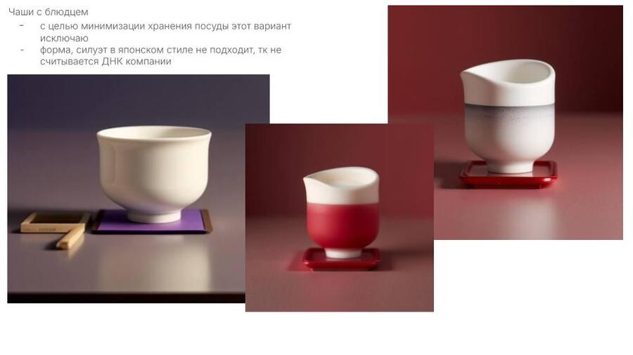 Также они должны отвечать следующим критериям: - премиальность (материалы, форма); - функциональность (удобство хранения, простота в уходе, простота производства); - ДНК бренда (цветовая палитра, геометрия).