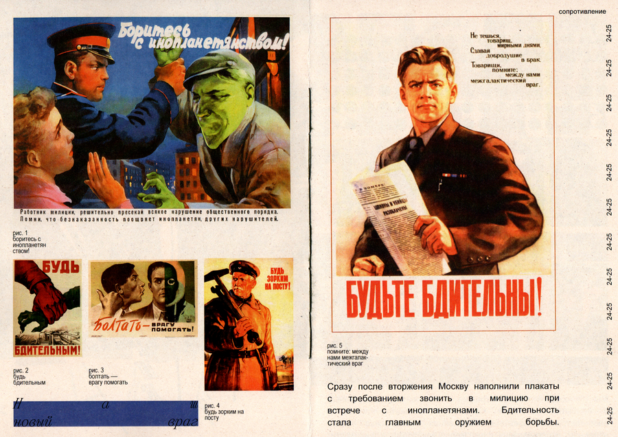 Вторжение инопланетян не могло не вызвать бурной реакции, преимущественно негативной, в самых разных слоях общества. Конфликт с пришельцами развивался и в военной, и в гражданской сфере. Город заполонили плакаты с призывами обращаться в милицию при встрече подозрительных личностей.