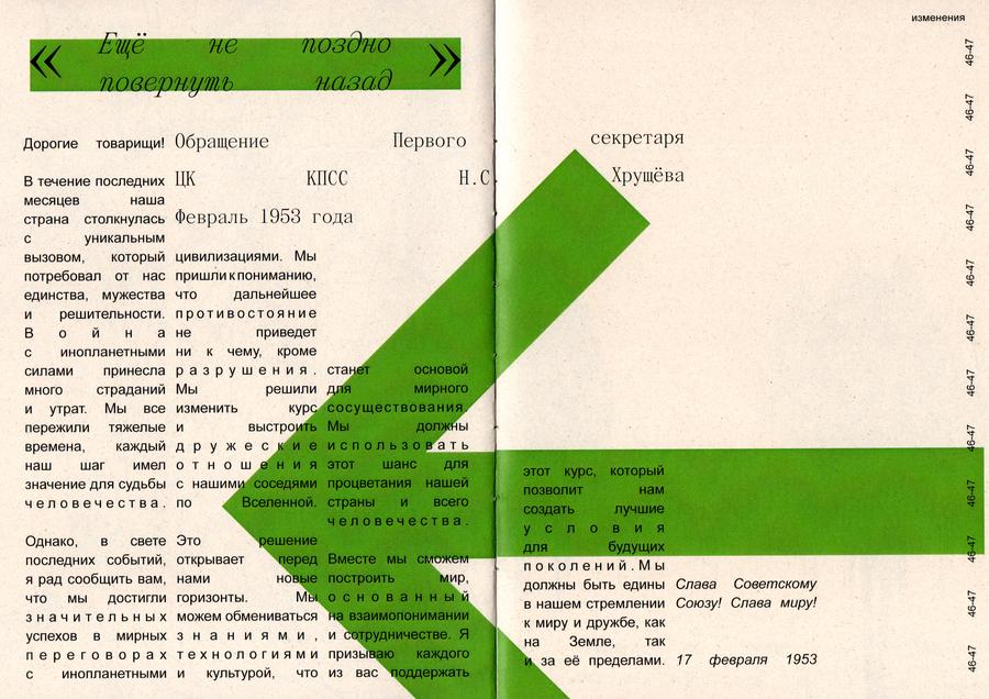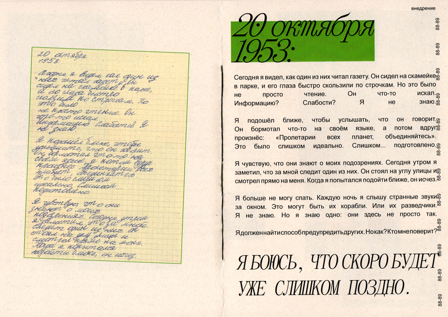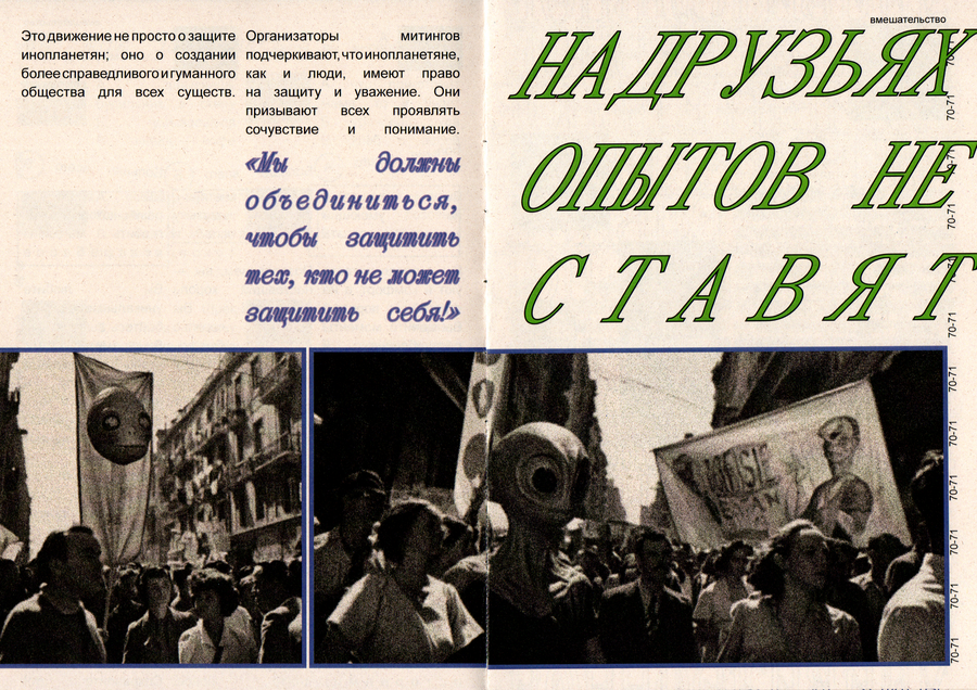 Такими же методами, которыми сеялась вражда, начал продвигаться мир. Сосуществование с инопланетянами стало новой политикой, новой целью ЦК КПСС. Не можешь победить — возглавь. Сделай пришельца частью общества, предложи работать на благо коммунизма.