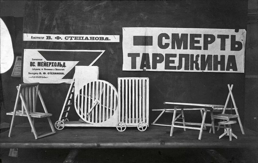 Так, будучи художником-постановщиком спектакля «Смерть Тарелкина», сама Степанова подписывалась исключительно как «конструктор» постановки. Неудивительно, ведь её декорации были заточены не столько на декоративную красоту, сколько на взаимодействие с актером, видоизменение, многозадачность.