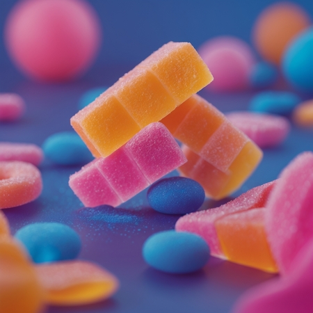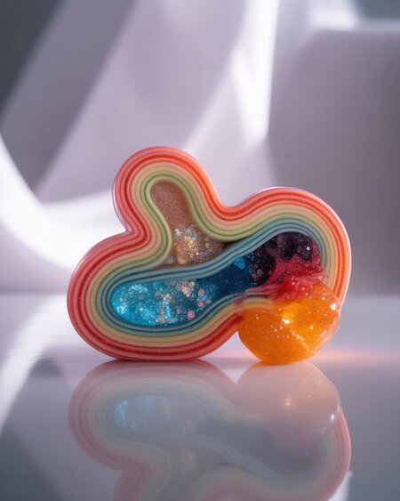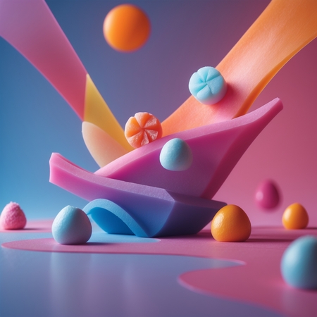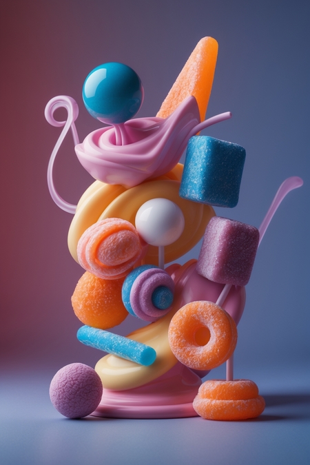 Используя нейросети Ideogram и Leonardo.ai, я сгенерировала несколько вариаций абстрактных конфет.