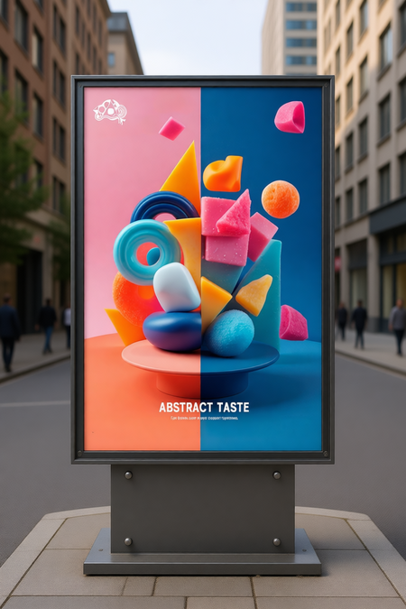— цветовая палитра — абстрактные формы В. В. Кандинского — слоган «ABSTRACT TASTE»