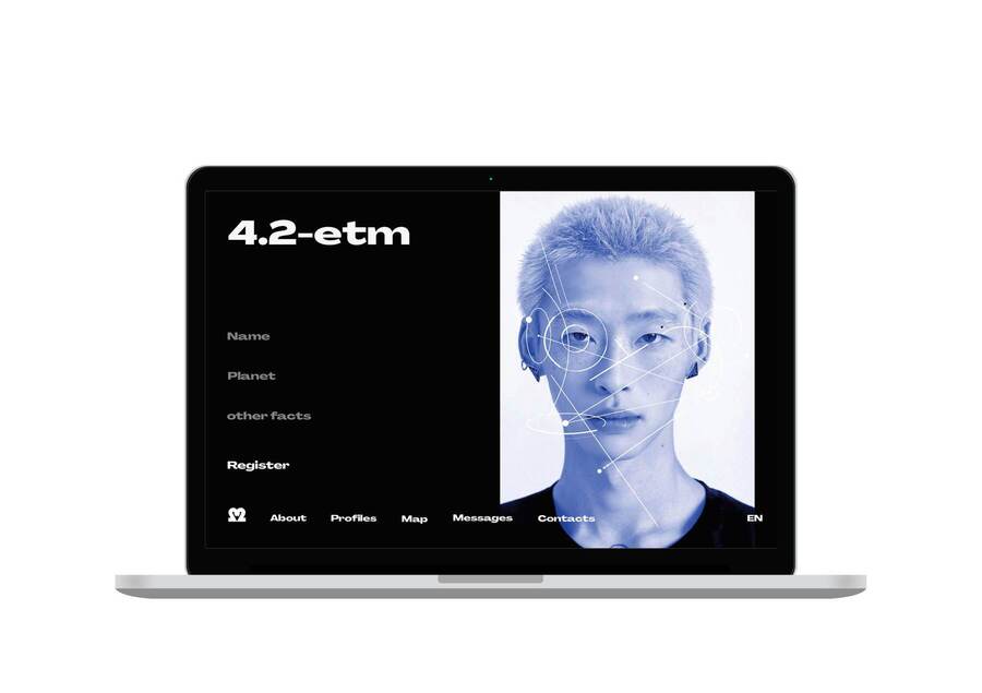 Prompt: create a futuristic, minimalist website for the space dating agency «4.2-etm.» The design should feature sleek, clean lines with subtle cosmic elements like stars, planets, and nebulae in the background. The layout should be simple and intuitive, with smooth animations and holographic-style interfaces. Use soft lighting effects and modern typography, ensuring that the «4.2-etm» logo stands out. The overall aesthetic should evoke a sense of space exploration and cosmic connections, with interactive features that feel cutting-edge yet inviting for users seeking intergalactic romance.