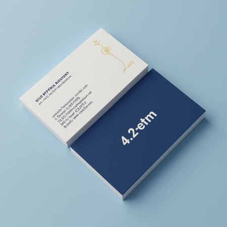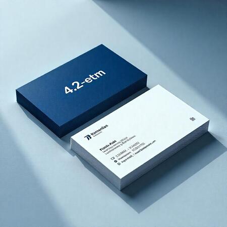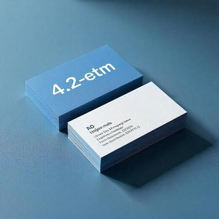 Prompt: design a minimalist business card mock-up for a space dating agency named «4.2-etm». The logo should feature the name in the RS125 font. Use a color palette of deep blue #1F3B73, dark blue #193559, sky blue #224573, light blue #C2D7F2, and white #F2F2F2. The layout should be sleek and modern, with a clean, elegant design reflecting the theme of space exploration and futuristic connections.