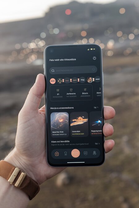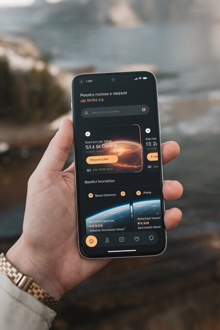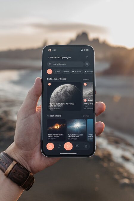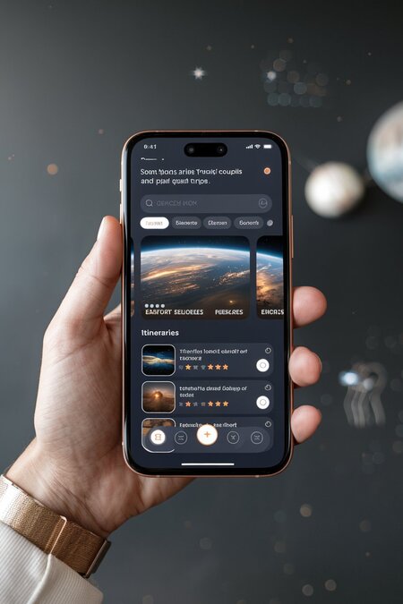 Prompt: design a simple, minimalist app for «4.2-etm» that lets couples explore space destinations and plan trips. The interface should be clean, with subtle glowing accents and smooth transitions. Include basic features for itineraries, space-themed activities, and sharing experiences. The design should focus on ease of use and a sense of cosmic adventure.