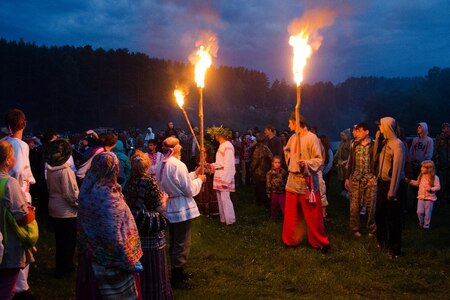 Мрачные элементы: В некоторых версиях праздника участвуют костюмированные перформансы, где появляются такие фольклорные персонажи, как Русалки, Лешие и Кикиморы — древние мифологические существа, символизирующие природные силы и мистические угрозы. В ночи, когда «раскрываются» границы между мирами, такие персонажи могут выступать в жутких ролях, а постановки часто сопровождаются устрашающей музыкой и световыми эффектами.