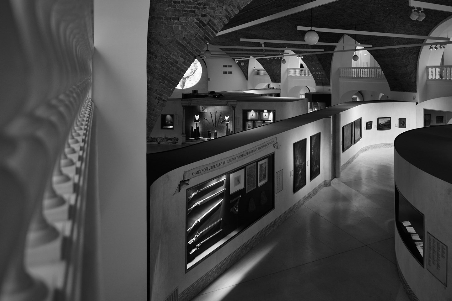 1 июня 2024 года в Манеже Малого Эрмитажа открылась выставка «Приключения барона Мюнхгаузена в России», которую спроектировал Андрей Пунин — главный куратор профиля «Среда и интерьер».