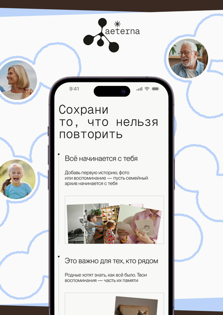 AETERNA ценит сохранение личной истории и непрерывность памяти, помогая передавать опыт и смыслы между поколениями н аэтом основана наша миссия, ценности и Tone of voice