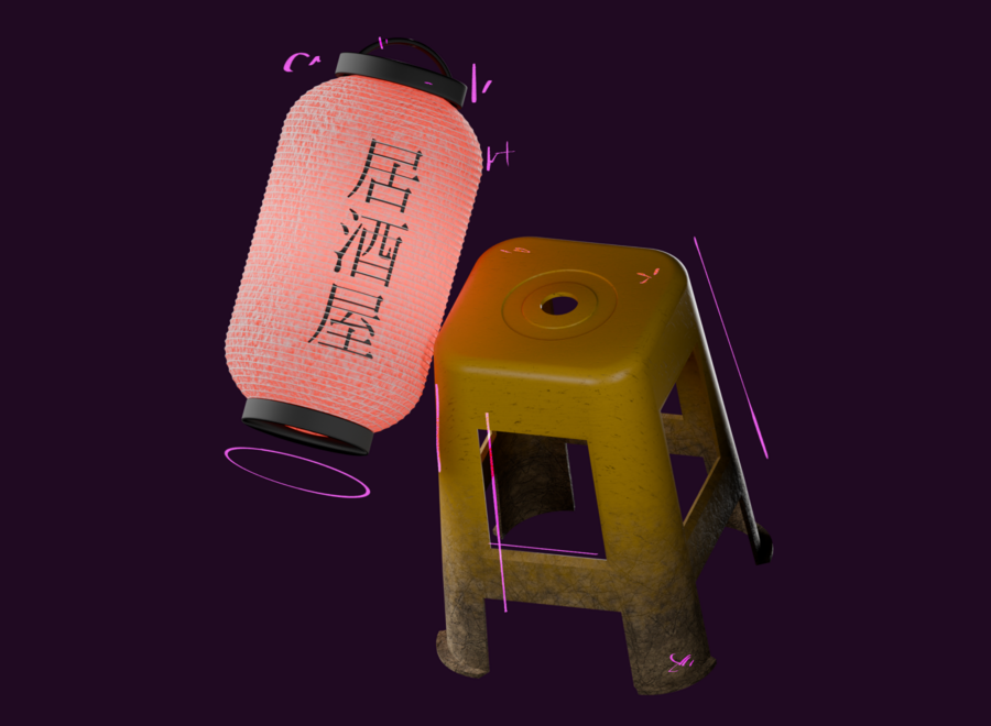 Поверх рендеров нанесена 2D графика — стилистический прием, отсылающий к миру анимационной картины «The Witness» художника Альберто Мьельго.