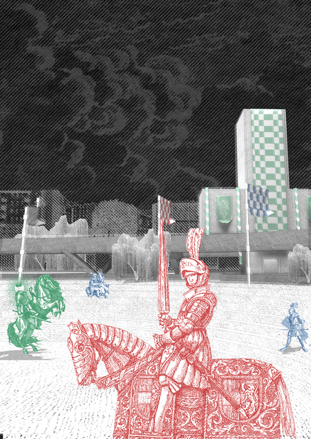 Культура Рыцарских боев была наиболее распространена в западной Европе, то есть европейцы — носители именно этой культуры, поэтому в качестве геральдики, взятой за основу декора были взяты гербы наиболее близких к Петербургу европейских стран: Эстония, Финляндия и Норвегия.
