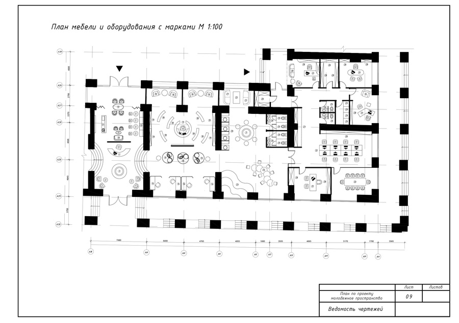 Площадь проектируемого пространства составляет 615 кв. м. Объект расположен по адресу: г. Санкт-Петербург, ул. Садовая, дом 62, первый этаж.