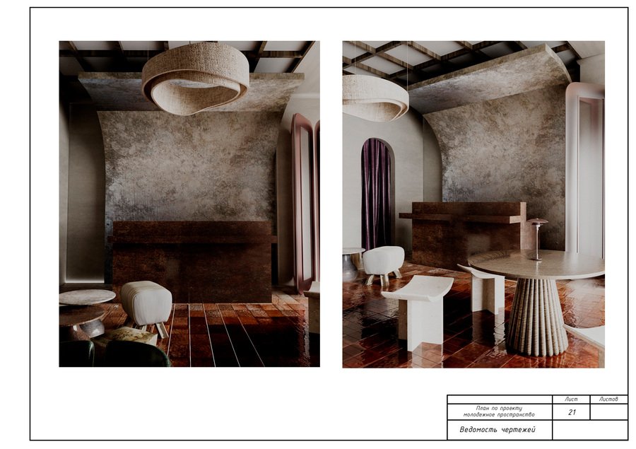Проект посвящён разработке интерьера креативного пространства, расположенного в здании Никольских рядов. Концепция интерьера основана на бережном отношении к историческому контексту объекта: классические архитектурные мотивы переосмысливаются и дополняются элементами сюрреализма. Такое сочетание подчёркивает уникальность пространства, придаёт ему выразительность и формирует творческую атмосферу.
