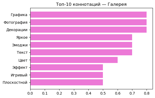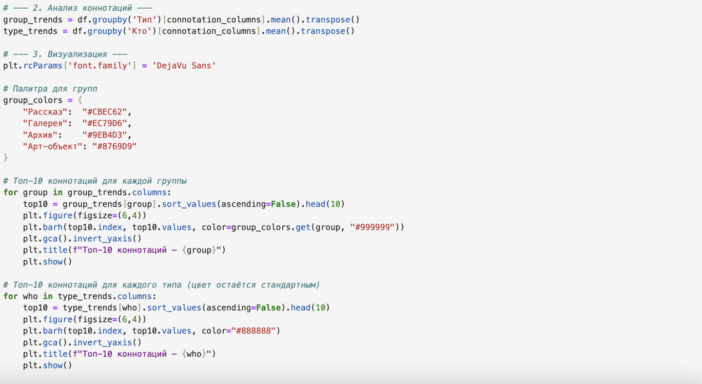 Для каждой группы был составлен топ-10 коннотаций