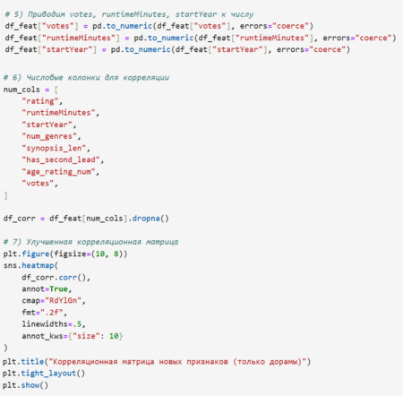 График «Корреляционная матрица новых признаков (только дорамы)»
