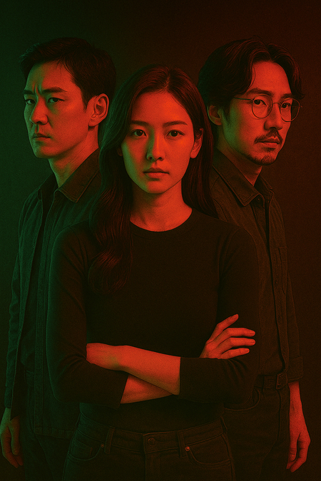 «Сгенерируй вертикальный постер 1750×2480 в стиле корейских дорам, без текста, в палитре 3C8C3A / 7DA641 / 0D0000 / D93232. Используй драматическое освещение, позы как на примере…»