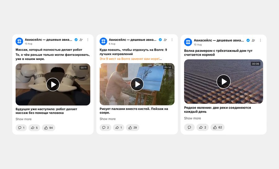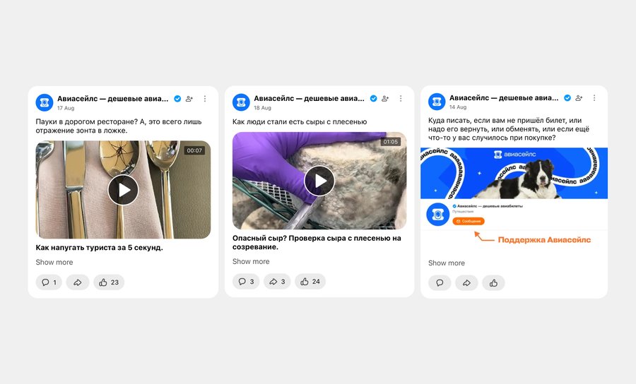 Среди прочих видов контента, Авиасейлс также создает видео-контент. Бренд использует не только видео на Youtube, но также формат коротких видео в TikTok и Instagram (Запрещен на территории РФ).