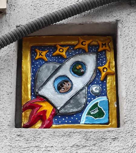 Помимо выбора образов и цвета для формирования композиции и сюжета своих работ, Атака Ники чутко подбирает место и форму объектов на которые она помещает свои стрит-арт работы.