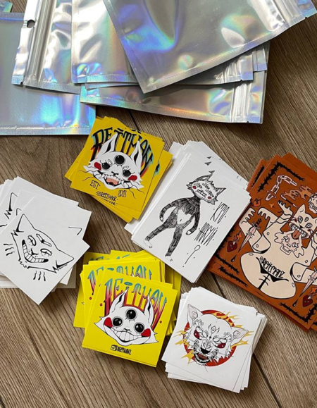 Помимо рисования героя, Вницай уделяет большое внимание леттерингам в своих работах.