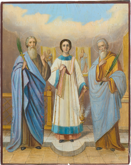 Мученик Трифон, великомученик Евстафий и мученик Иулиан в молении Святой Троице (Сопрестолие)