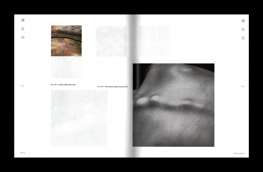 Для визуального исследования была разработана система иконок, основанных на квадратах — объективном и металлическом, кругах — субъективном и человеческом, а также их сочетании