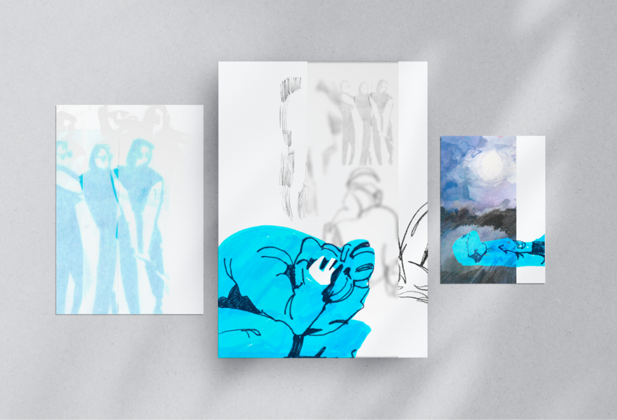 Серия набросков с использованием различных приемов, материалов и их комбинаций, которые мы успели изучить в течение первого модуля.