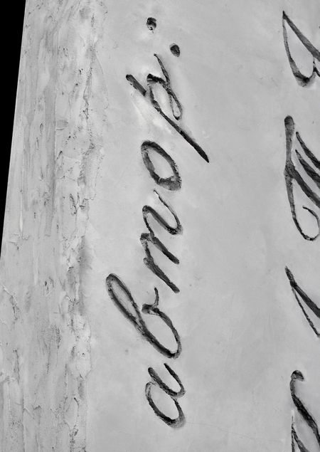 Этикетаж, который обычно является вторичным, служебным элементом любой конвенциональной выставки, по своей сути ничего не значащим без главного произведения, без контекста, поднимается до уровня самостоятельного, самоценного произведения: увеличенный в размере в несколько раз он приобретает монументальный характер и обнаруживает свое сходство с мемориальным камнем, на который также нанесена «служебная информация».